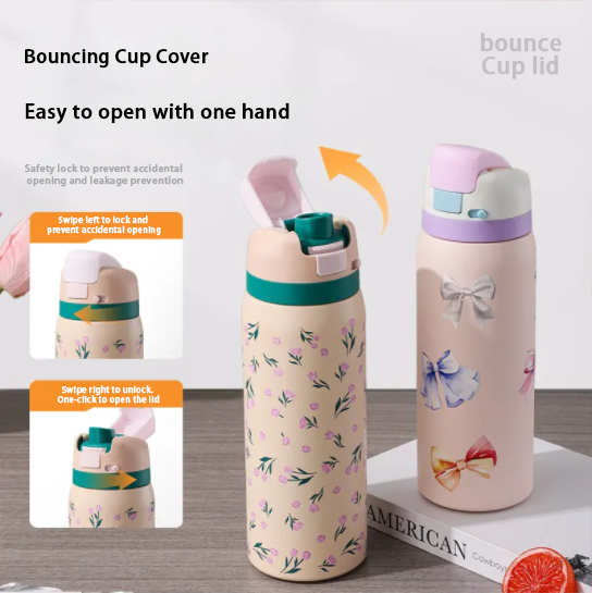 🚀 One-Handed Bounce Lid with Safety Lock — Easy to open with one hand, and the safety lock prevents accidental opening and leakage, perfect for on-the-go use.